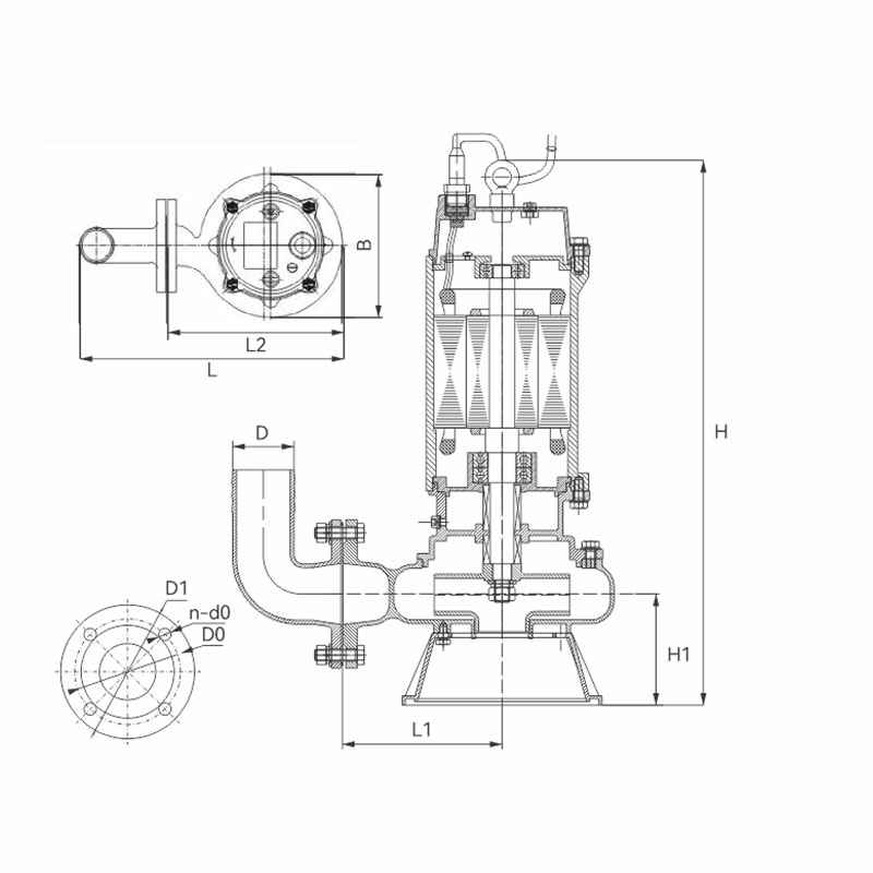 | 8 | 50WQ(D)15-20-2.2S | 15 | 20 | 2.2 | 220/380 | 50 | 2860/2900 | 369 | 158 | 266 | 217 | 558 | 118 | Φ50 | Φ110 | 4-Φ14 | Φ140 |
