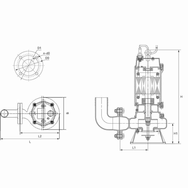 | 14 | 150WQ180-30-30S | 180 | 30 | 30 | 380 | 150 | 1450 | / | / | / | / | / | / | Φ150 | Φ225 | 4-Φ17.5 | Φ265 |