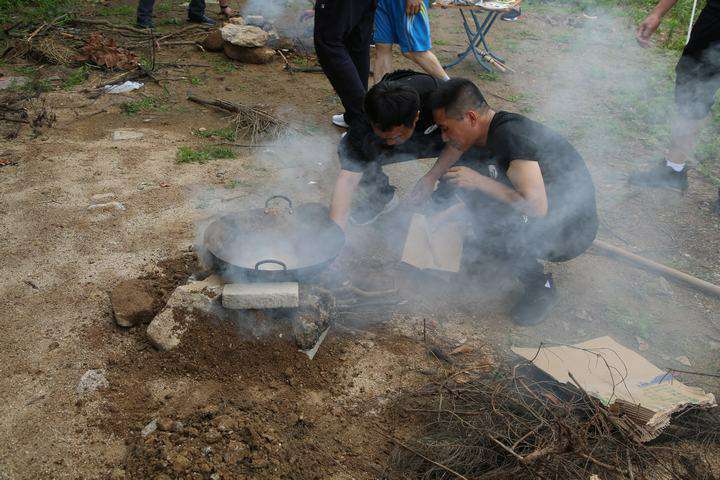 钻木取火,众人拾柴,埋锅造饭,炊烟袅袅,香飘四溢,美味可口。